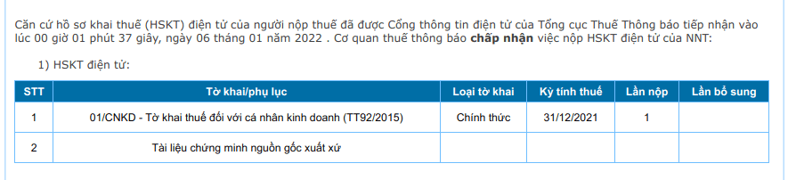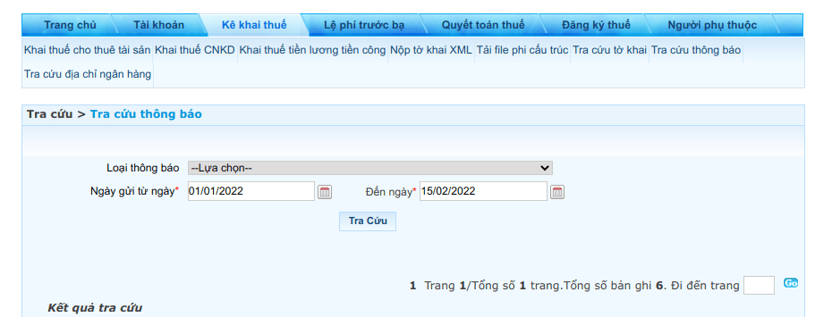Vào mục Tra cứu thông báo. Sau khi kê khai sẽ có ngay một mục là Tiếp nhận hồ sơ khai thuế điện tử. Sau đó vài ngày sẽ có xác nhận nộp hồ sơ thuế điện tử.