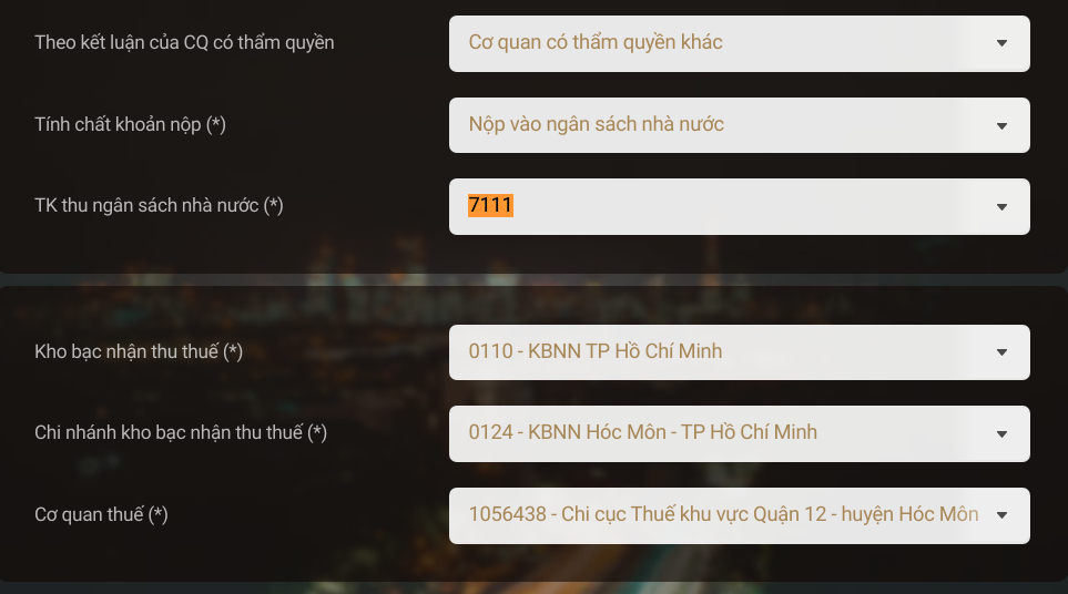 Bên phía đội thuế có người hỗ trợ mình nên nói mình ra ngân hàng BIDV hoặc Vietcombank để đóng. Tuy nhiên mình phát hiện có tính năng nộp thuế của Vietcombank nên thử sử dụng và được chấp nhận lên hệ thống thành công.